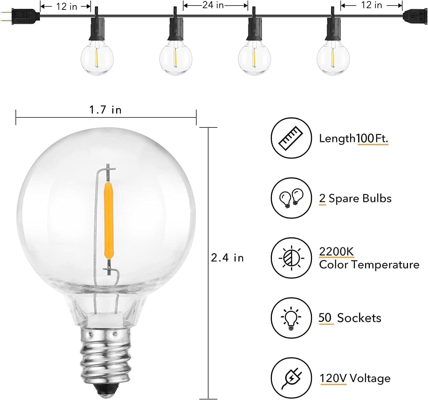 Illuminate your outdoor spaces with the Brightown Outdoor String Lights, designed for patios, backyards, porches, and cafés. Stretching 100 feet and featuring 50 G40 globe LED bulbs, these lights provide warm, inviting illumination that transforms any area into a cozy, stylish setting. Built to withstand all weather conditions, they are fully waterproof and connectable, making it easy to extend coverage for larger spaces. Ideal for both residential and commercial use, they enhance ambiance while ensuring durability, energy efficiency, and long-lasting performance. Elevate your outdoor décor effortlessly and create memorable evenings with this must-have lighting solution, perfect for entertaining or relaxing under the stars.