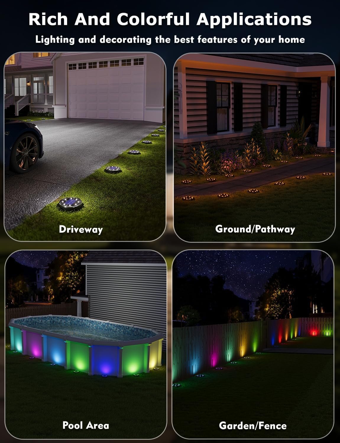 From a performance standpoint, these solar ground lights deliver excellent value by combining color-control flexibility, weather resilience, and low-maintenance operation. They serve both as stylish landscape décor and practical pathway illumination, helping reduce trip hazards while enhancing evening curb appeal. If you’re searching for outdoor solar pathway lighting that offers vibrant color, reliable construction, and user-friendly control, this set is a must-buy for creating a welcoming, illuminated exterior.
