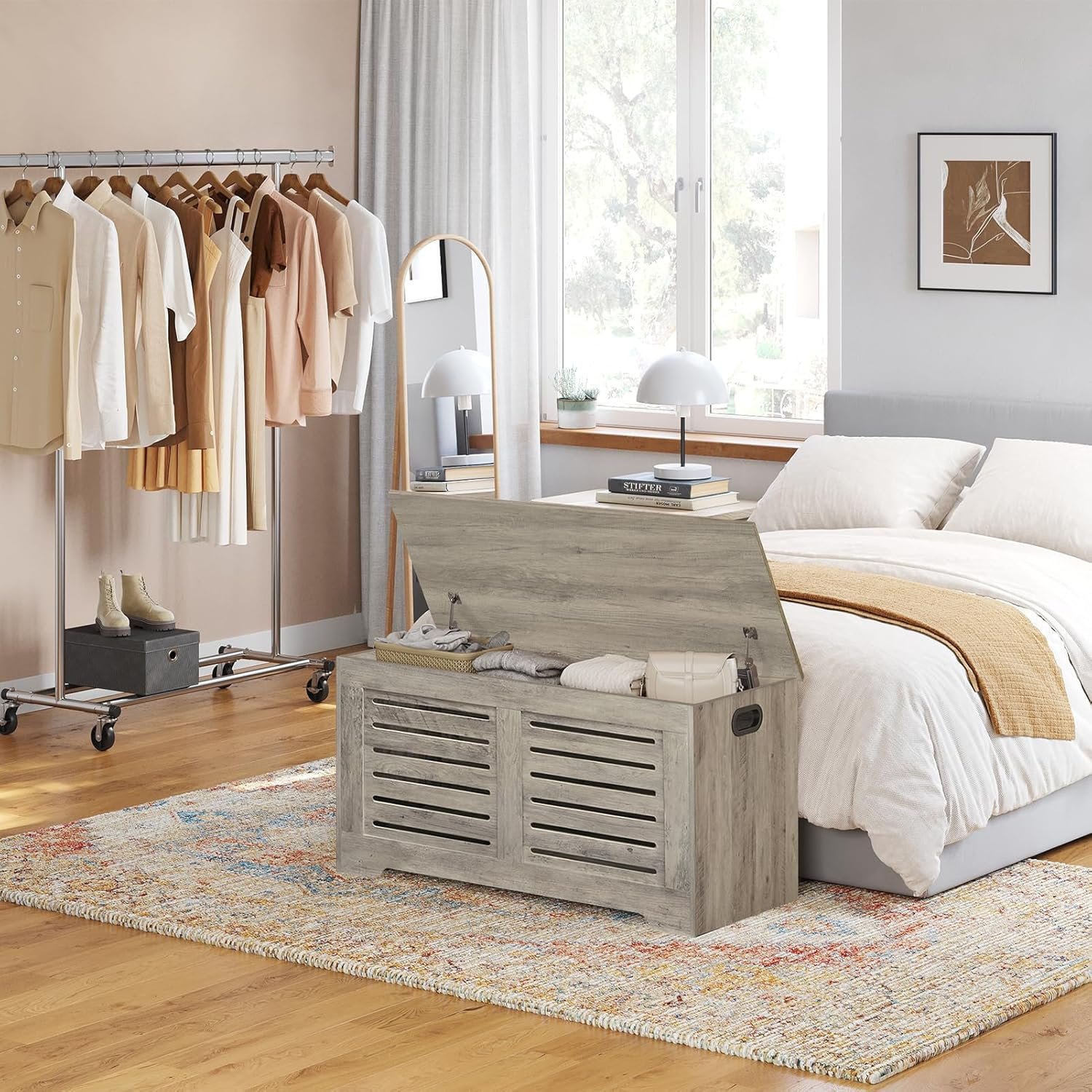 The DINZI LVJ Flip-Top Storage Bench is an elegant and durable entryway solution that combines stylish design with functional storage and seating. Built with engineered wood and equipped with dual safety hinges that control the flip-top lid, this bench provides a safe and user-friendly experience without risking fingers being pinched. The ample internal compartment is perfect for organizing shoes, blankets, bags or seasonal items, while the sturdy top offers a stable bench seat for putting on footwear. With its compact dimensions (approximately 30″ L × 15.7″ W × 18.9″ H) and vintage-inspired finish, it complements a variety of home décor styles—from farmhouse to modern industrial—making it a versatile addition to hallways, mudrooms or bedrooms. Lightweight yet robust, this storage bench supports up to approximately 330 lbs of static load, offering peace of mind for everyday use. Easy to wipe clean and designed for easy assembly, it’s a smart choice for anyone seeking a practical and aesthetic upgrade to their entrance space. Don’t miss out—click to explore features and bring this multipurpose bench home today.