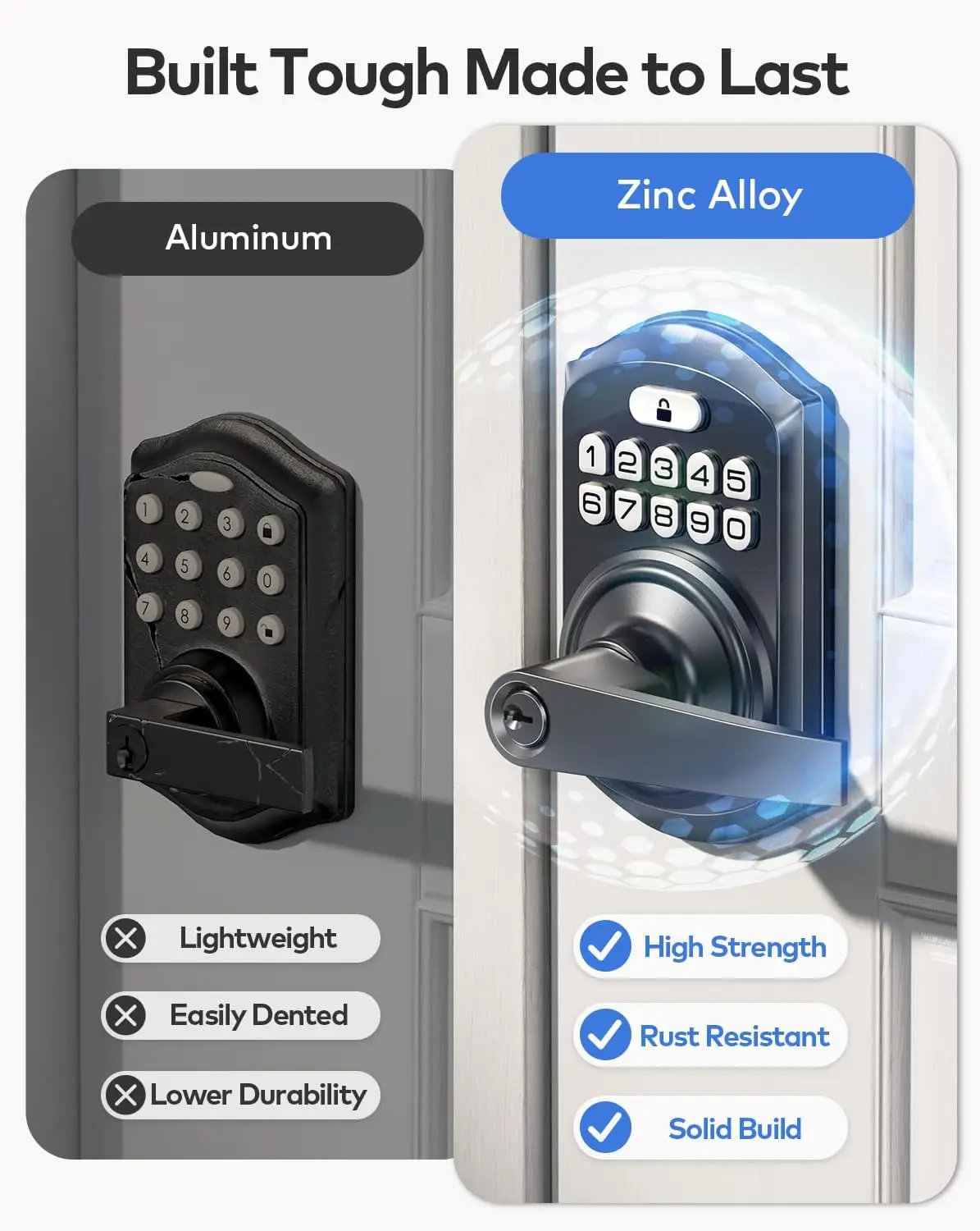 The TEEHO Keypad Door Lock with Handle offers a secure and modern keyless entry solution for your home or office. Featuring customizable access codes, one-time passwords for guests, and an automatic locking function, it ensures convenience and peace of mind. Its durable zinc alloy construction and IP54 weather resistance make it perfect for both indoor and outdoor use. Enhance your home security and enjoy effortless control with this stylish smart door lock.