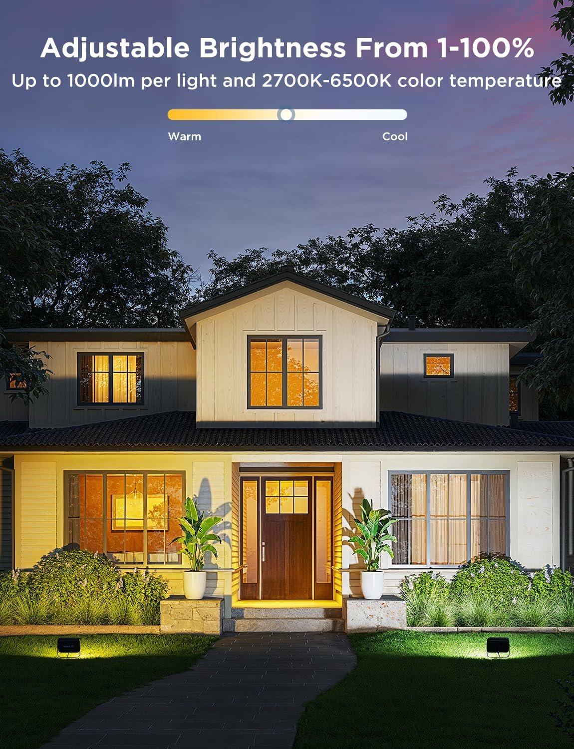 Built for the elements, the upgraded IP66-rated waterproof housing ensures reliable performance outdoors — from rain and snow to hot summer nights — so you can install these LED lights on walls, decks or in your garden without worry. The full-spectrum brightness (around 1000 lumens per light) and adjustable color temperature range (2700 K–6500 K) allow you to highlight architectural features, illuminate pathways or elevate seasonal décor with crisp clarity. Setup is easy thanks to the included power adapter, control box and intuitive app interface, and once mounted, the flexible system integrates into your smart home with scheduling, remote control and group lighting features.