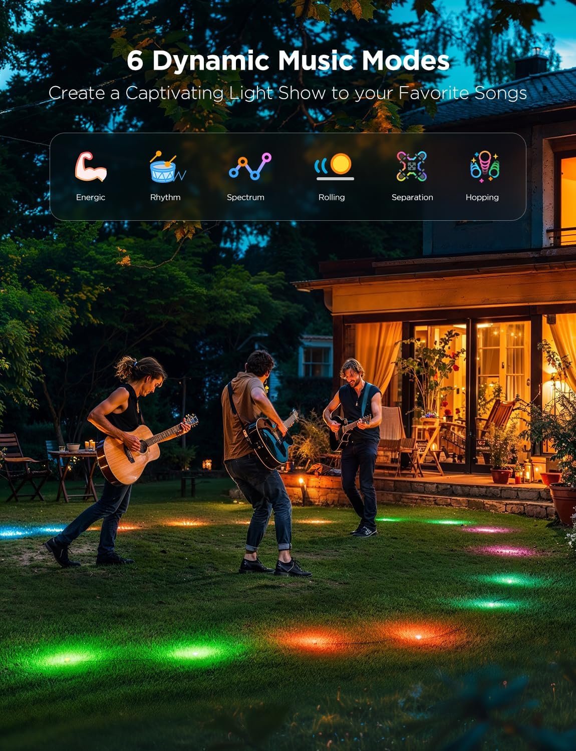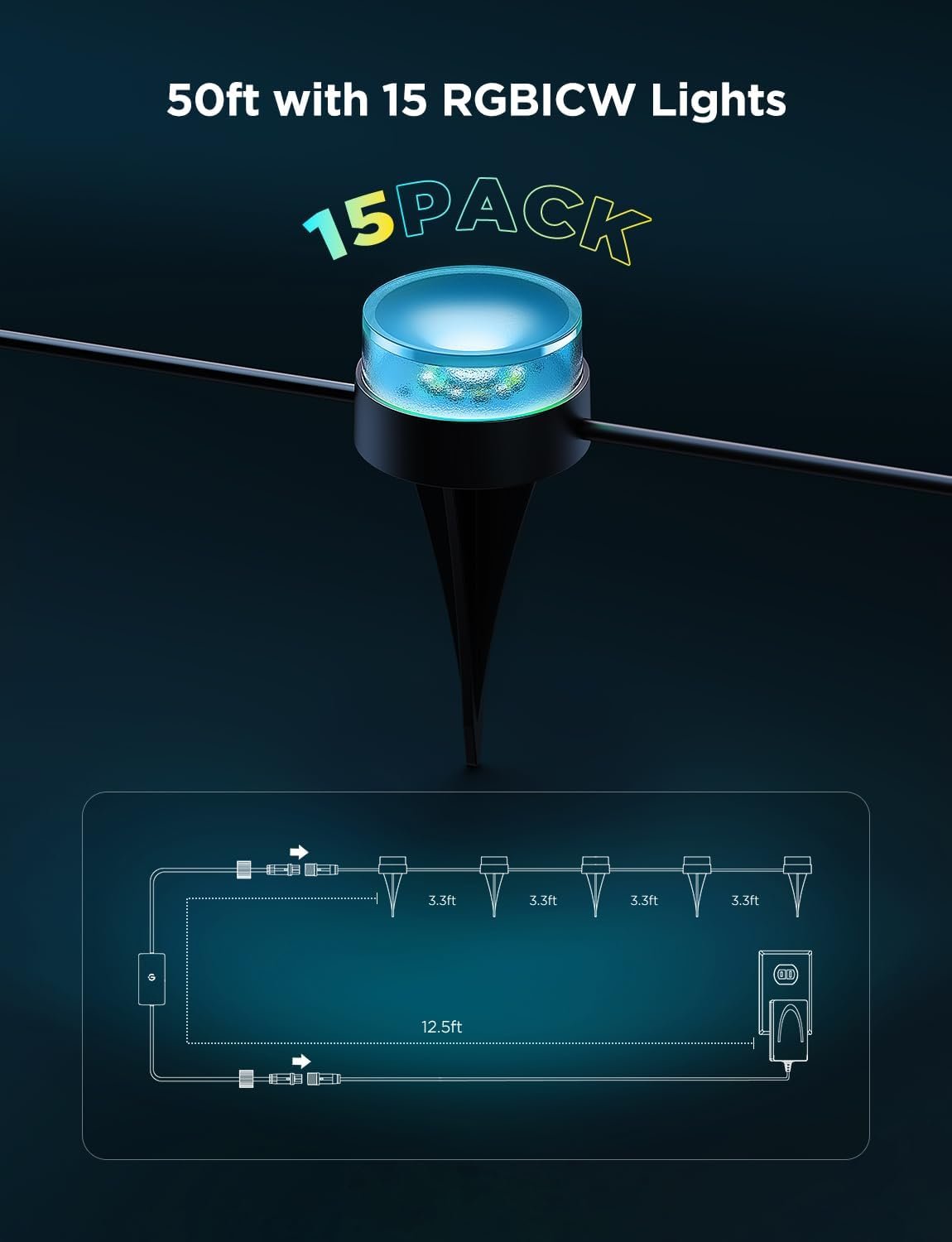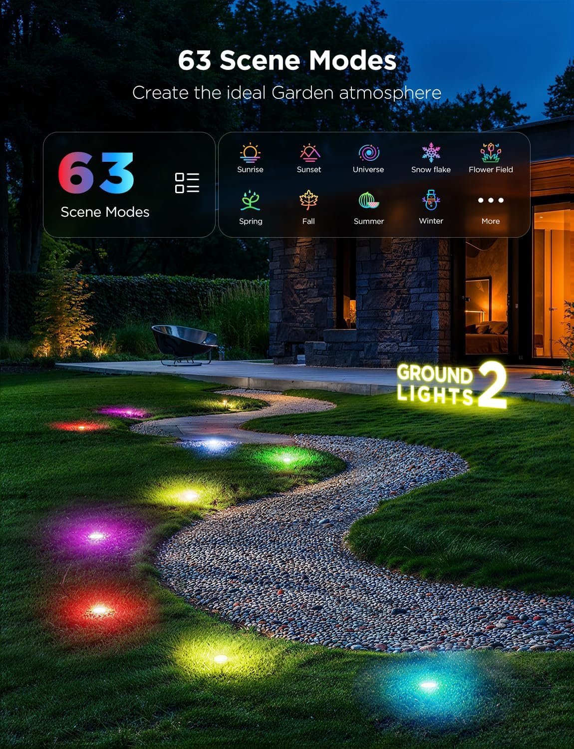 The Govee Outdoor Ground Lights 2 bring smart, professional‑grade lighting to your yard, patio or walkway with ease. Featuring a 50‑foot cable length and 15 individual RGBIC LED units, it offers full‑color customization through the Govee app or voice assistants like Alexa and Google Assistant, while the IP67 waterproof design ensures reliable durability in rain, snow or harsh conditions. The innovative reflector cover expands the light radius over 11 inches to illuminate pathways and décor in style. Elevate your outdoor ambiance with this versatile lighting solution—upgrade your landscape today and enjoy lasting performance and dynamic effects.
