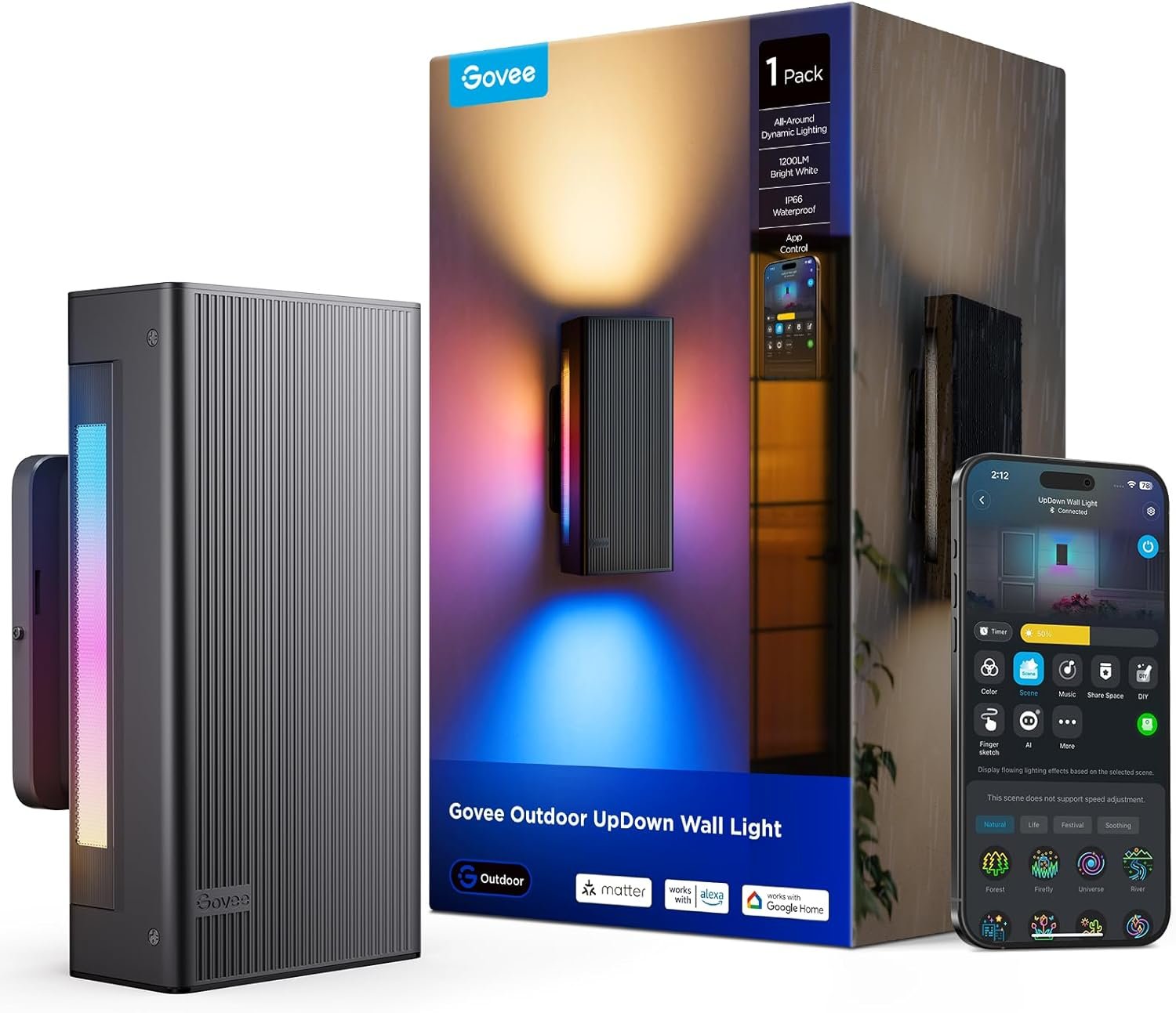The Govee Outdoor RGBICWW Waterproof UpDown Wall Lights (ASIN B0F3CQJZRQ) deliver a high‑end smart lighting experience designed for your exterior décor, combining vibrant color effects, dynamic scene options, and robust weatherproof engineering. With each sconce producing up to 1200 lumens and supporting millions of RGBIC colors plus tunable white—from warm to cool—these lights allow you to tailor your outdoor ambiance with precision and flair. Integrated with the Govee Home App, voice‑assistant support (Alexa, Google Assistant, Matter), and 64 pre‑set scene modes including DIY editable options, you can manage lighting effects via app, voice or automation—ideal for porches, patios, driveways or architectural facades.