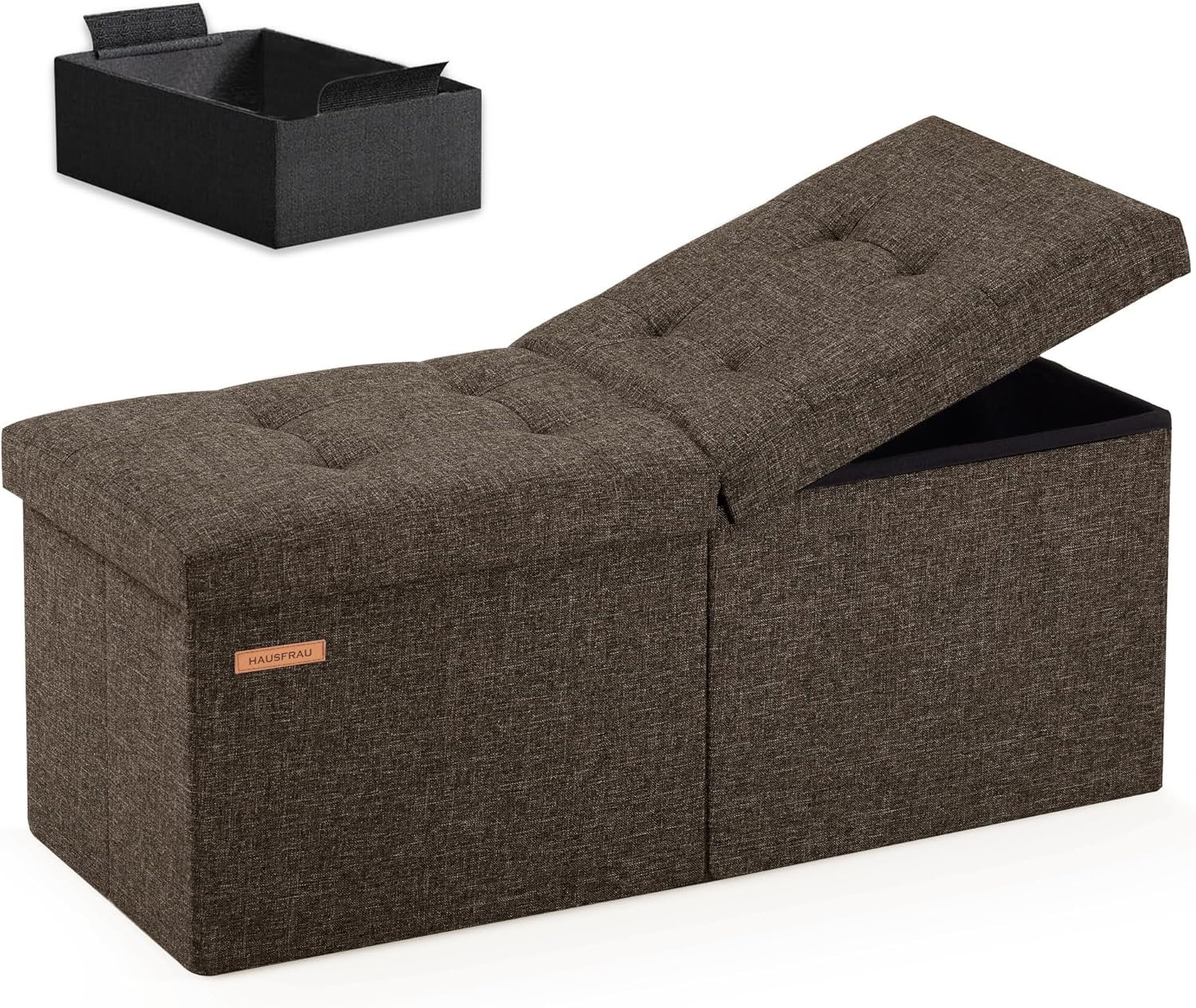The HAUSFRAU 31.5" Ottoman with Storage Bench offers a stylish and practical solution for modern living spaces. Crafted with a sturdy MDF frame and upholstered in soft linen fabric, this ottoman provides a comfortable seat while concealing a spacious 72L storage compartment beneath its flip-up lid. Its compact dimensions make it ideal for entryways, bedrooms, or living rooms, where it serves as both a decorative accent and a functional piece of furniture. Whether you're looking to declutter your space or add a touch of elegance, this ottoman is a versatile choice.