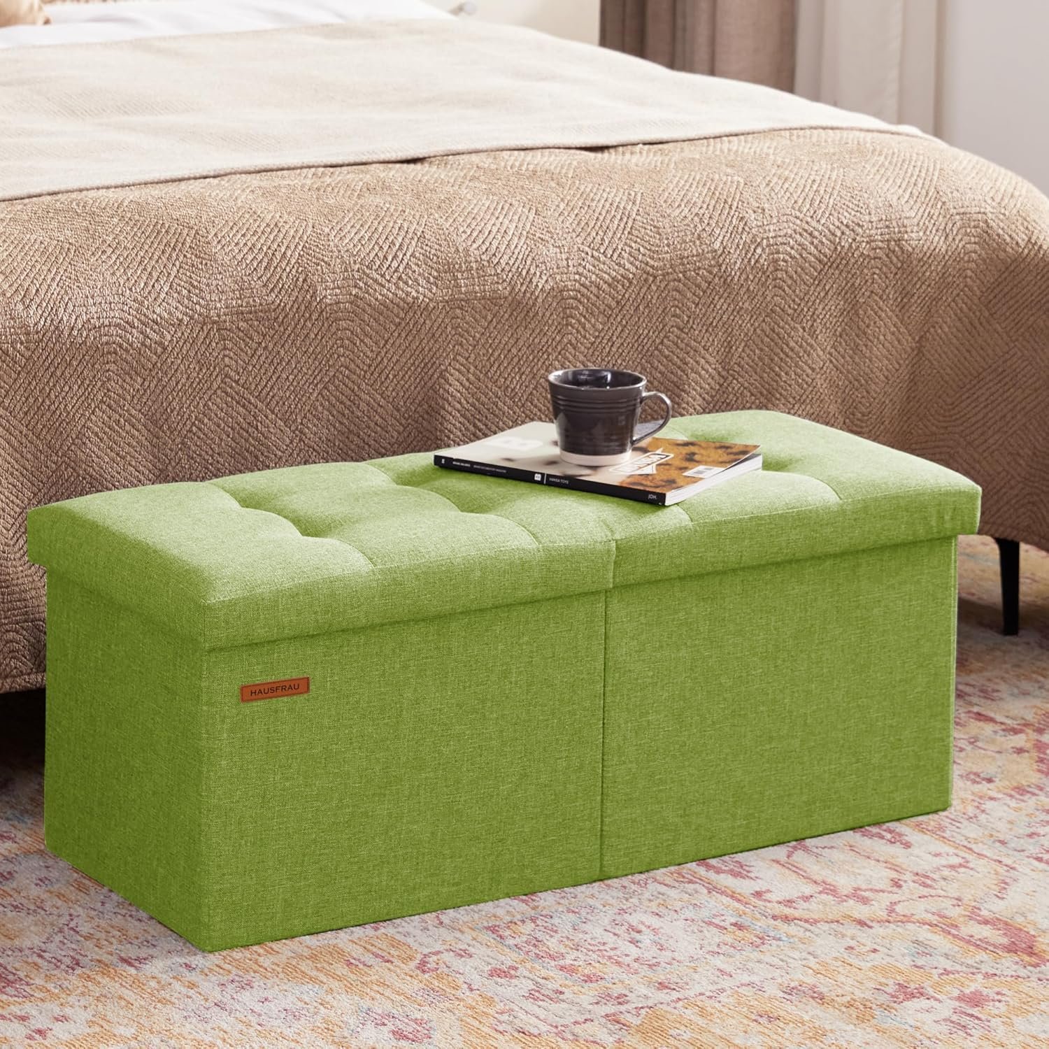 The HAUSFRAU 31.5-Inch Ottoman with Storage Bench is a versatile and stylish addition to any home. Crafted from high-quality MDF and upholstered in soft linen fabric, this ottoman offers both durability and comfort. Its flip-top lid reveals a spacious 72-liter storage compartment, perfect for organizing blankets, shoes, or other household items. With a maximum static load capacity of 286 lbs, it serves as both a functional storage solution and a comfortable seating option. The elegant tufted design and neutral avocado color seamlessly complement various interior styles, making it suitable for bedrooms, living rooms, or entryways. When not in use, the ottoman can be easily folded to save space, making it ideal for small living areas. Assembly is straightforward, and the included removable storage bin adds an extra layer of convenience. Whether you’re looking to declutter your space or add a touch of sophistication, the HAUSFRAU Ottoman with Storage Bench is a must-have piece of furniture. Its blend of functionality, comfort, and style ensures it meets the diverse needs of modern living.
