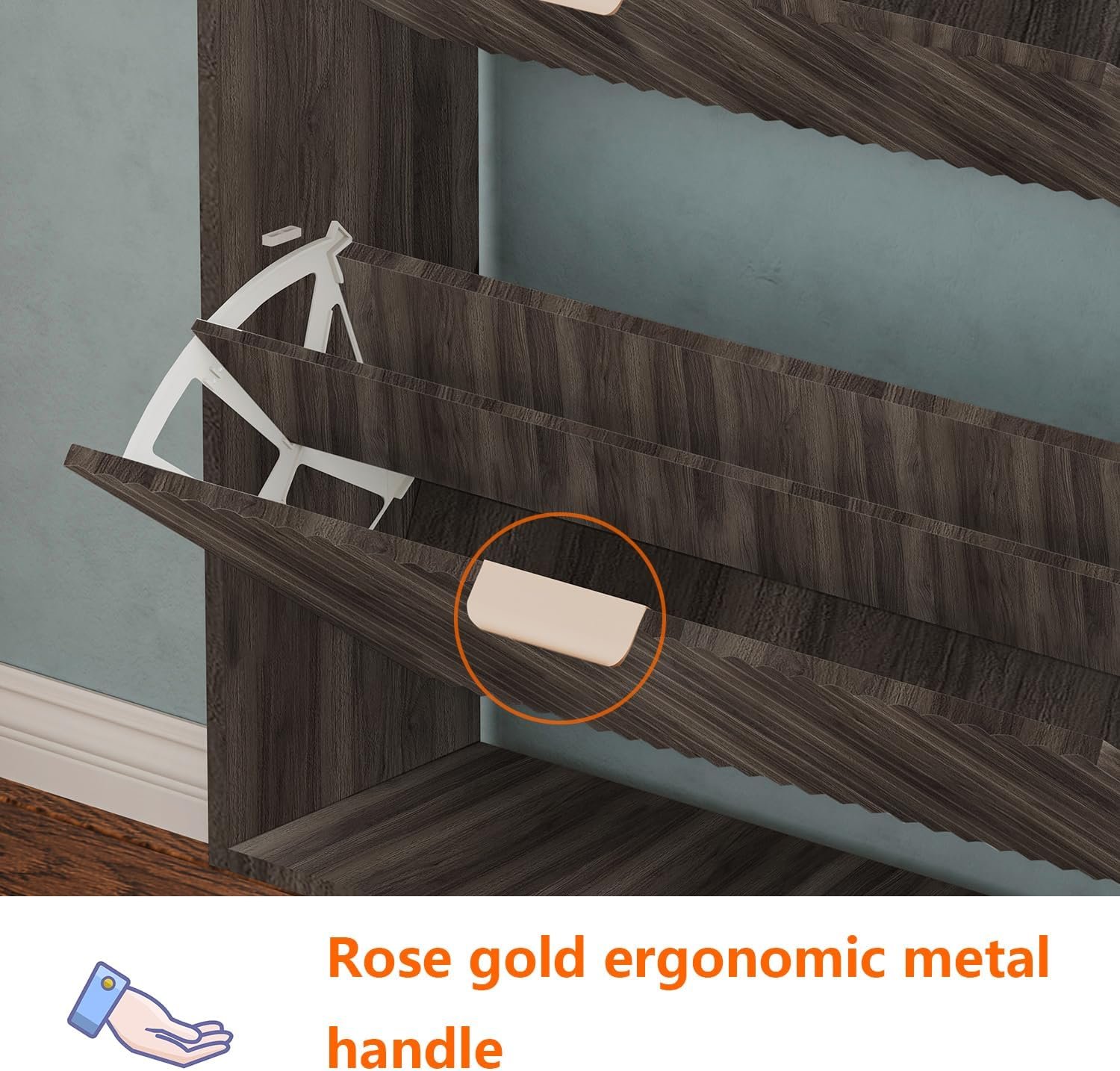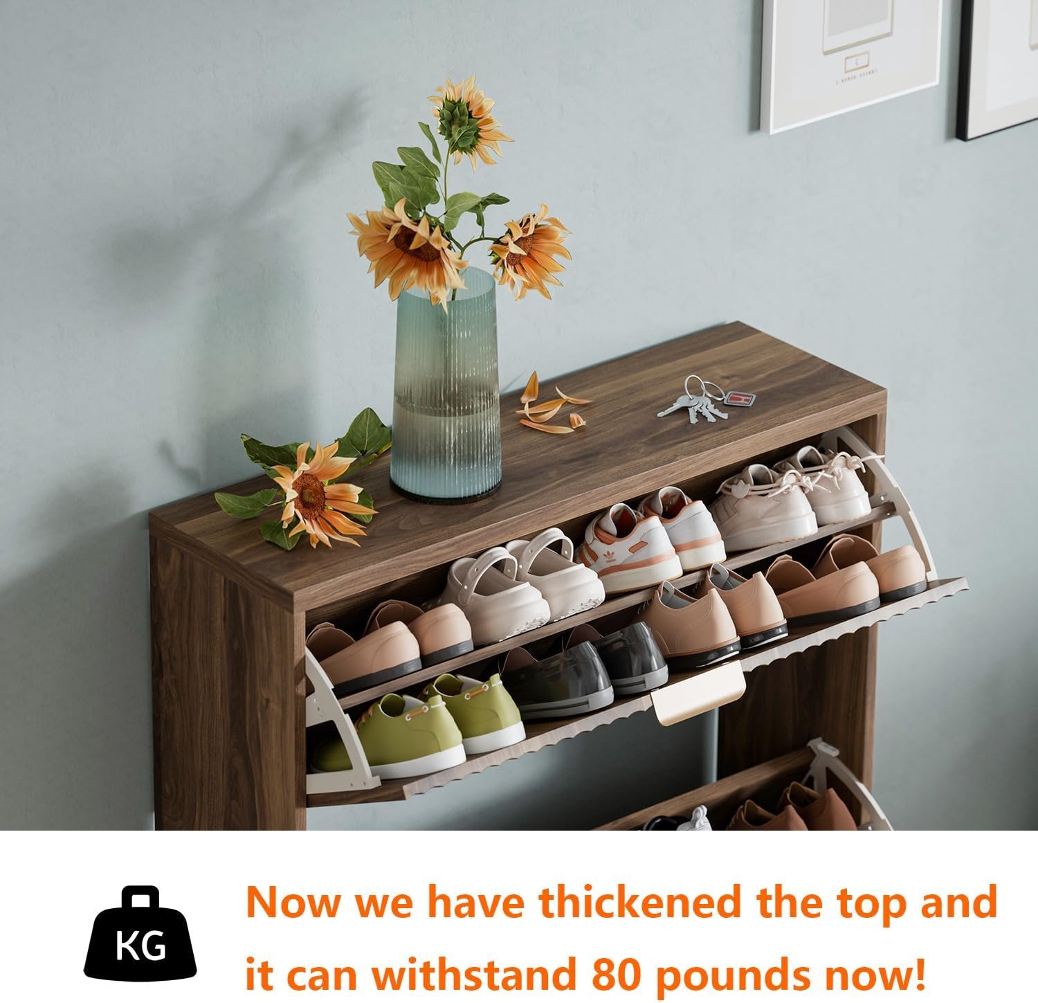 Constructed with engineered wood and adorned in a warm walnut finish, this “freestanding shoe organizer” offers both durability and a premium appearance. It includes built‑in safety with an anti‑tip bracket to secure it to the wall—ideal for households with children or pets. The top surface is thickened to support up to 80 lbs, enabling use as a display area for keys, decorative items or small plants, giving the piece versatile functionality beyond just shoe storage.