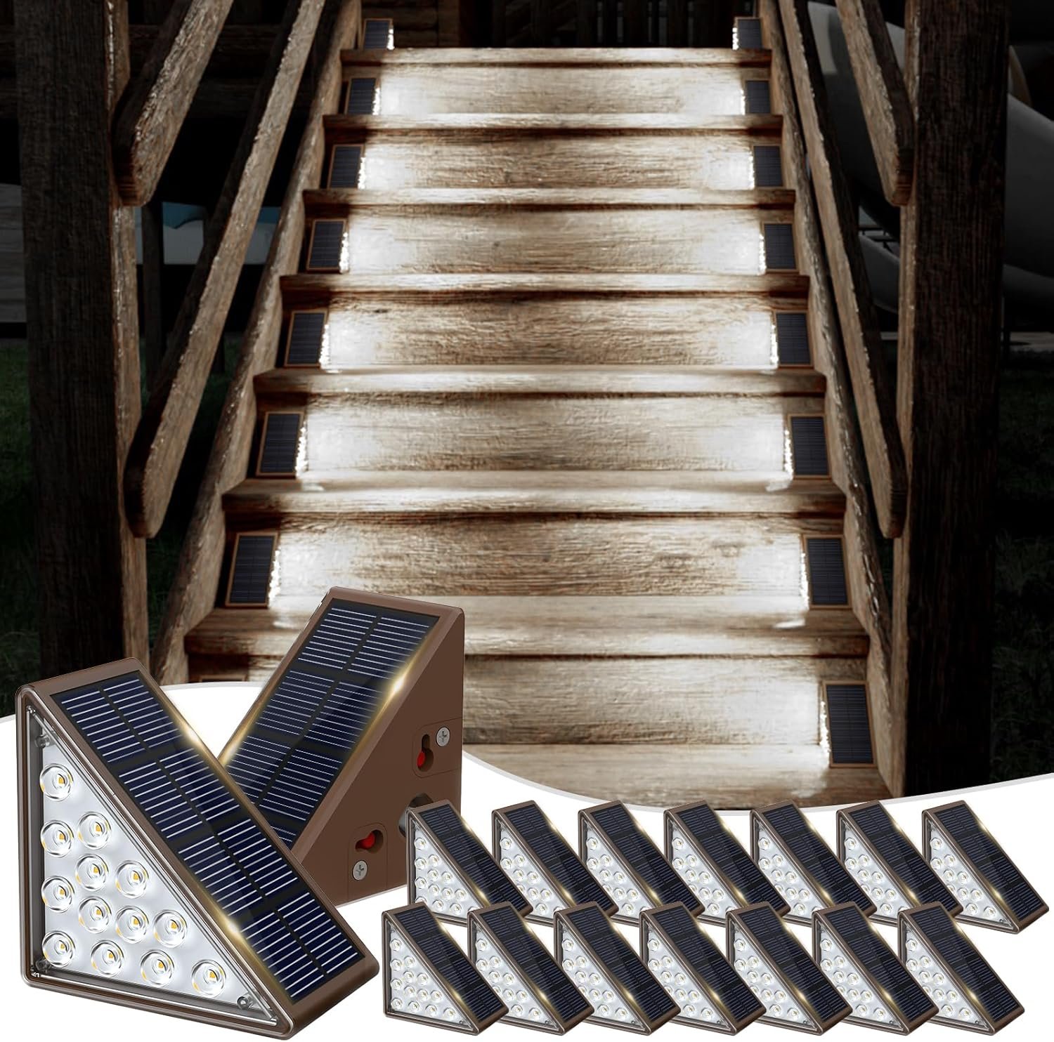 Illuminate your outdoor stairs or patio with the JOFIOS Solar Step Lights (12‑Pack, IP67 Waterproof), engineered to combine safety and style in one smart package. These solar‑powered, LED triangular lights deliver up to 100 lumens per unit and feature an IP67‑rated, weather‑proof housing built to withstand rain and snow, while automatically turning on at dusk and off at dawn. With easy no‑wiring installation and a sleek profile designed for stair edges and walkways, this set elevates both ambiance and security—click now to upgrade your outdoor lighting.