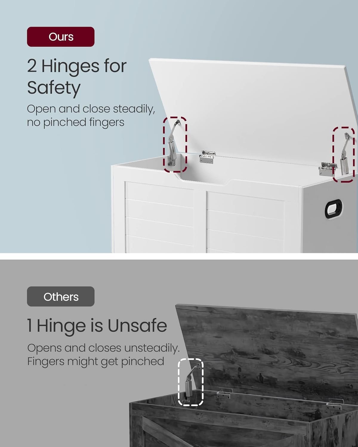 • Ensures safety with anti-slam hinges